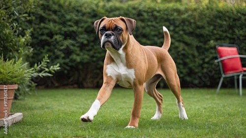 © QuoDesign, Obraz premium Fawn boxer dog in the garden