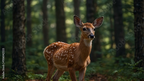 Fototapeta premium Fawn standing in the forest.