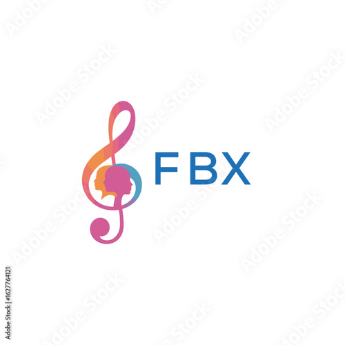 Naklejka premium FBX “Colorful music logo with human faces and treble clef design” FBX Later Logo, “Abstract music school logo with people and melody icon”