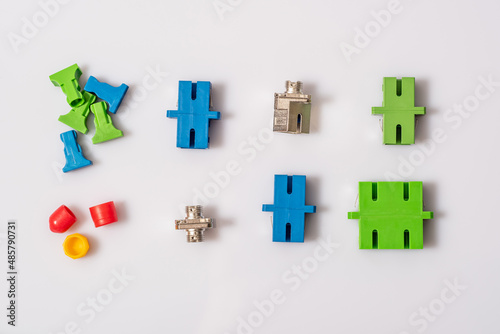 Obraz premium FC, SC adapters and plugs for them for single mode fiber, light background