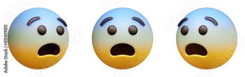 © HTGanzo, Fototapeta premium Fearful face three-dimensional emoji. Scared emoticon isolated on transparent background. 3D rendering