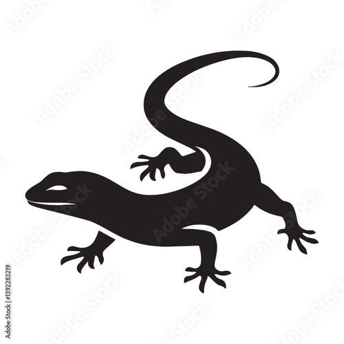 © Vectorhub, Naklejka premium Fearless Lizard silhouette, standing its ground in the wild – Lizard illustration – Minimalist Lizard vector – Reptile silhouette
