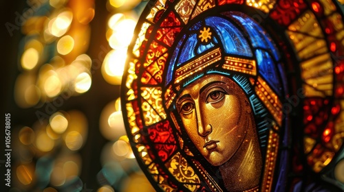 Fototapeta premium Feast of St. Josaphat. Stained glass artwork of a woman's face with intricate...