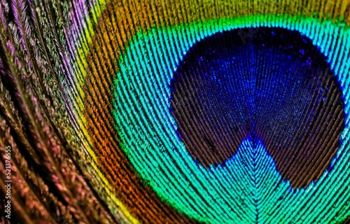 Naklejka premium Feather background. Feather texture. Peafowl feather. Peacock feather. Abstract background. Amazing wallpaper. Janmashtami background. Beautiful feather.