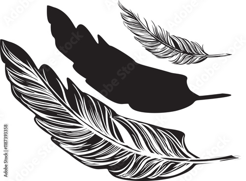 Obraz premium Feather beautiful vector drawing set