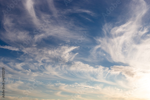© Maria, Obraz premium Feather clouds on the bright blue sky