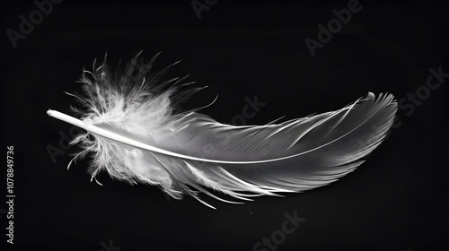 Obraz premium Feather gently falling against minimal black and bfedef eacceaee generated illustration