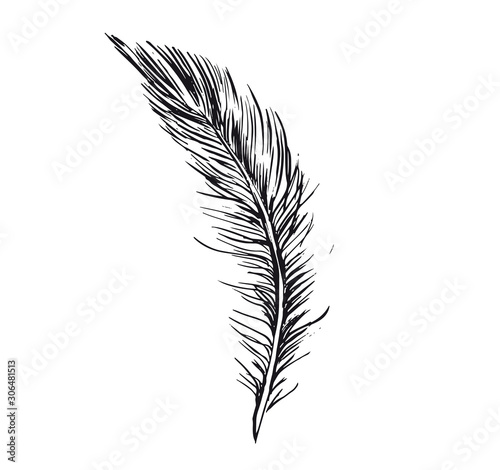 Obraz premium Feather hand drawn on white background