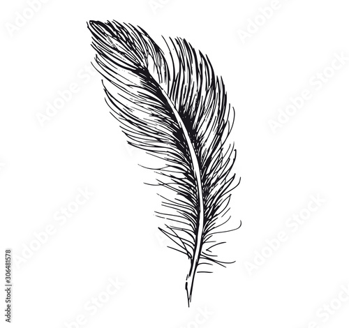 Obraz premium Feather hand drawn on white background
