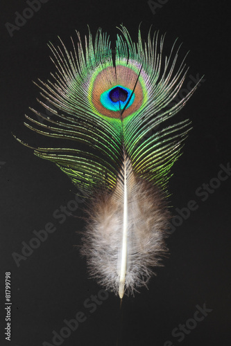 © feathercollector, Obraz premium feather of Green Peafowl (Pavo muticus)