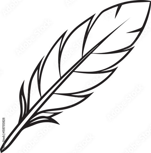 Fototapeta premium Feather outline vector illustration, line art