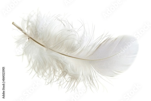 Obraz premium Feather. Single Fluffy White Object Isolated on Black Background