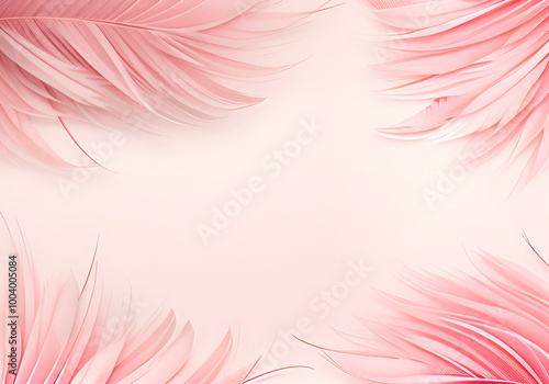 © Ирина Старикова, Obraz premium Feathers background. Artificial decorative feathers texture. Soft cotton background. Fluffy bird feather. Various shapes. Pink color cotton wool pattern. Handmade decorations decoupage.
