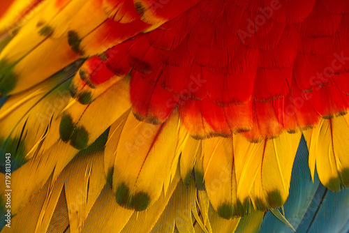 © Andrea Izzotti, Naklejka premium feathers detail of Colorful ara ara bird in Amazon rainforest