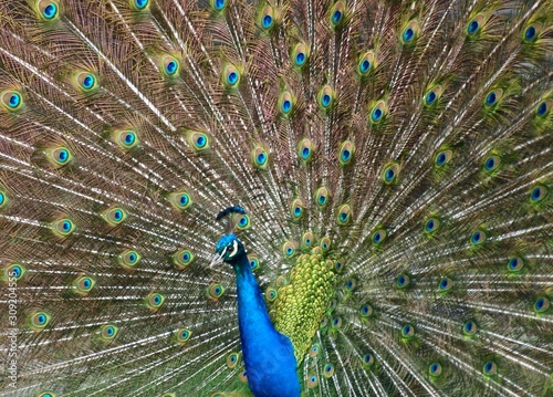 © Stimmungsbilder1, Naklejka premium Feathers in a wheel of a male peacock bird
