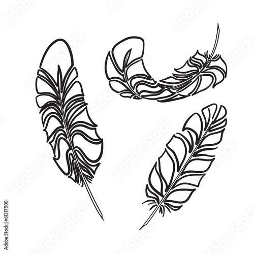 © phoenix_olga, Obraz premium Feathers sketch style. Vector illustration