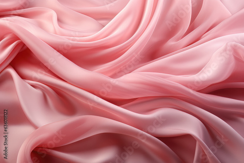 Fototapeta premium Features a beautiful light pastel pink silk cloth floating in the air, creating an elegant and ethereal atmosphere. Generative Ai.