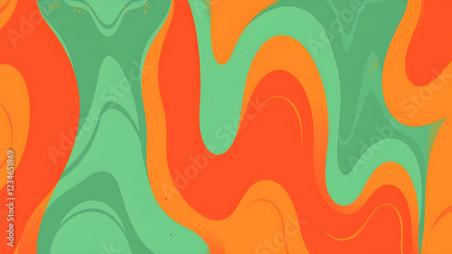© Tark, Fototapeta premium features a seamless retro background with wavy patterns interlocking in vibrant summer hues of green, orange and red the design incorporates a distressed texture, Generative AI