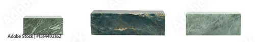 © Zaleman, Fototapeta premium Featuring a smooth surface and natural veins, this green marble block displays organic patterns and vibrant green tones, isolated on a transparent background and saved as a png