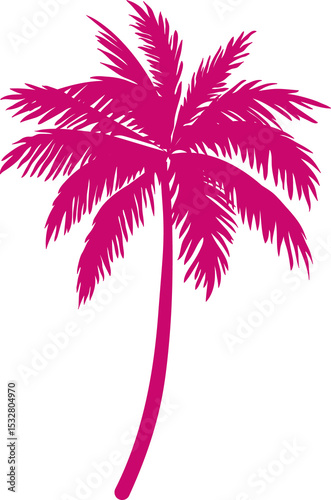 Obraz premium Featuring flat pink palm tree silhouette curving trunk, radiating fronds on transparent backdrop