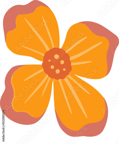 © vectorfusionart, Obraz premium Featuring four-petal flat flower coral-edged orange petals, dotting yellow spots, veins on clear bg