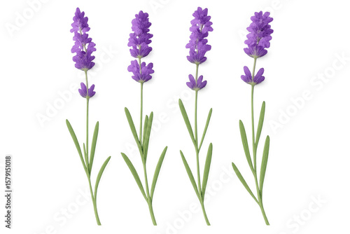 Naklejka premium Featuring four vibrant lavender flowers isolated against a transparent...