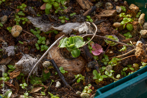 © Fencewood studio, Fototapeta premium February and the Eryngium "Silver Ghost" just begins to show in the unheated greenhouse at 900ft on the North Yorkshire smallholding