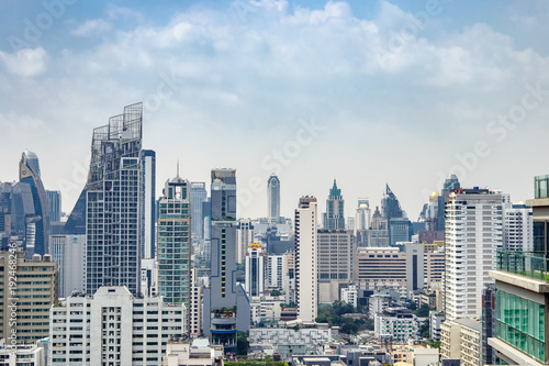 Fototapeta premium 15 February, 2018: Blue sky and city buildings in Bangkok Thailand