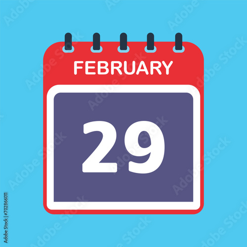 Fototapeta premium 29 February Calendar Date Flat Icon Day 29 Vector Illustration