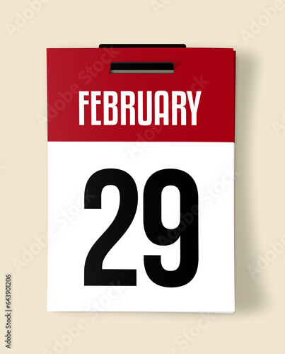 Fototapeta premium 29 February Calendar Date, Realistic calendar sheet hanging on wall