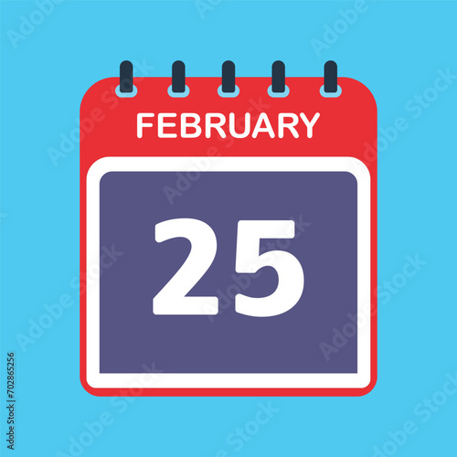 Fototapeta premium February 25, Calendar icon with shadow. Day, month. Flat vector illustration.