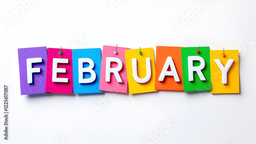 Fototapeta premium February colourful letters isolated on white background for Calendar, dates,...