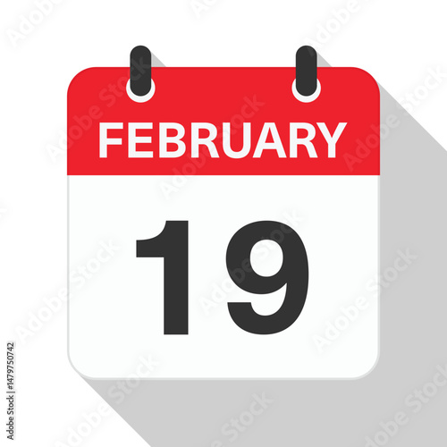 © TUGUDESIGN, Fototapeta premium February 19 Daily Calendar. Red Theme on White Background