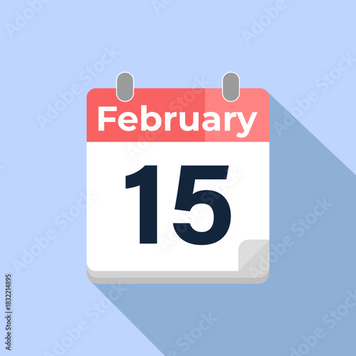 Fototapeta premium February 15 Vector Calendar Modern flat color vector calendar with date