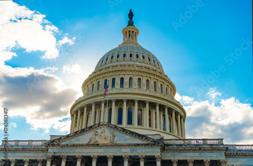 Fototapeta premium Federal government in the nation capital. USA symbol. American capital city. Washington State Capitol. United states Capitol. Capitol building. The Capitol building in Washington