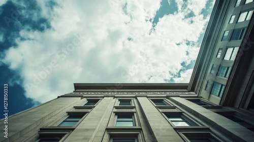 Fototapeta premium Federal Reserve building with cloudy sky. Featuring fiscal policy and monetary regulation