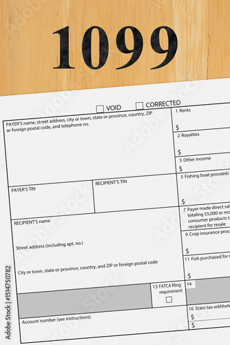 © Karen Roach, Obraz premium Federal tax 1099 form on a wood desk