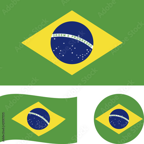 Fototapeta premium Federative Republic of Brazil. National flag. Correct proportions, wave, round. Abstract concept, icon set.