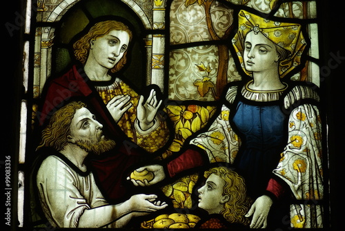 © Howgill, Fototapeta premium Feeding the poor (good deed) in stained glass