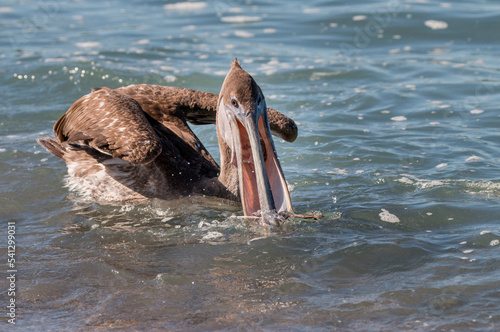 © Hodossy, Fototapeta premium feeding young brown pelican at Urbina Bay, Isabela, Galapagos