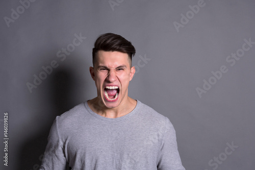 © Prostock-studio, Naklejka premium Feeling angry, furious man shouting loud