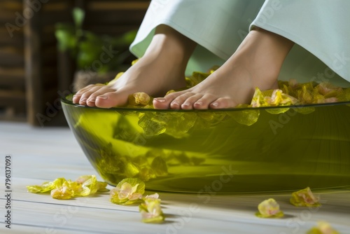 © Hanna Haradzetska, Obraz premium Feet being pampered with a revitalizing foot mask, promoting foot health