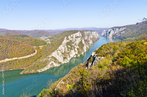 Obraz premium 2000 feet of vertical cliffs over Danube river at Djerdap gorge