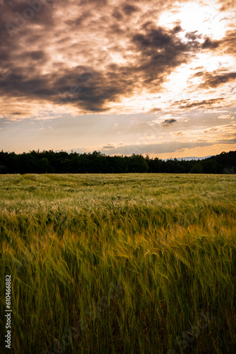 Fototapeta premium Feld, Getreide, Sonnenuntergang, Wolken, Himmel Abendrot