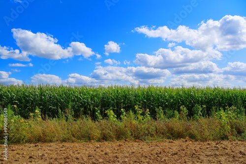 © chrischris, Obraz premium Feld mit blauem Himmel und Wolken