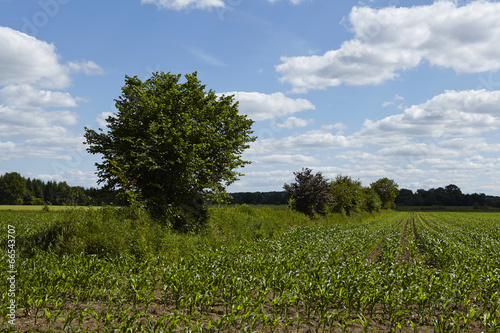 © Olaf Schulz, Obraz premium Feld mit jungen Maispflanzen