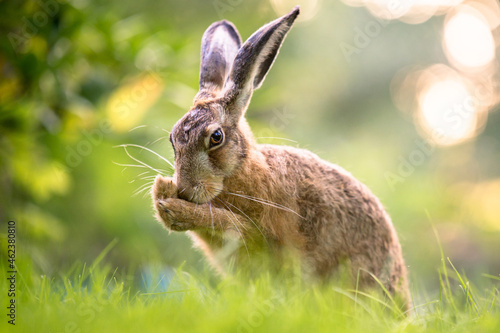 © sebgsh, Fototapeta premium Feldhase im Gegenlicht