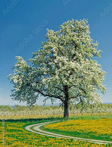 © traveldia, Fototapeta premium Feldweg durch blühenden Löwenzahn