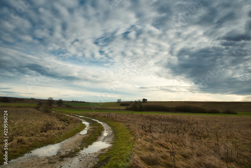 Fototapeta premium Feldweg mit Pfützen im Herbst