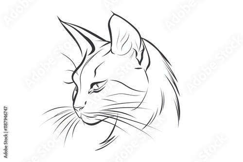 © Yuliia, Obraz premium Feline head in simple outline of a cat's head pointed